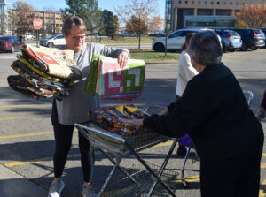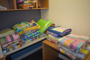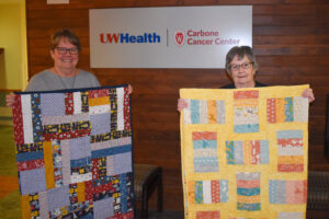 Over the next two months, quilters finished their projects and returned them to Polly’s store in time for the November donation. This tradition of giving began years ago by one of Polly’s customers who started donating quilts to UW Health after a family member underwent radiation therapy. Inspired by that act of kindness, Polly rallied her quilting community to expand the effort.