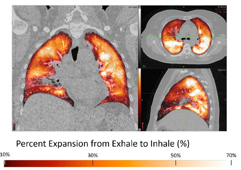 3. Functional Lung Avoidance Radiotherapy. This research aims to advance functional lung–avoidance techniques to reduce pulmonary toxicity during thoracic radiation. Using 4DCT to identify highly ventilated lung regions, this planning strategy minimizes radiation to functional tissue, lowering the risk of radiation-induced damage while maintaining tumor control. In collaboration with John Bayouth, PhD, we have completed the first randomized phase II clinical trial evaluating functional lung avoidance radiotherapy (NCT02843568). This study demonstrated that this strategy significantly decreases the risk of radiation-induced pneumonitis in patients receiving standard fractionated radiotherapy. We are currently developing a follow-up phase III study.